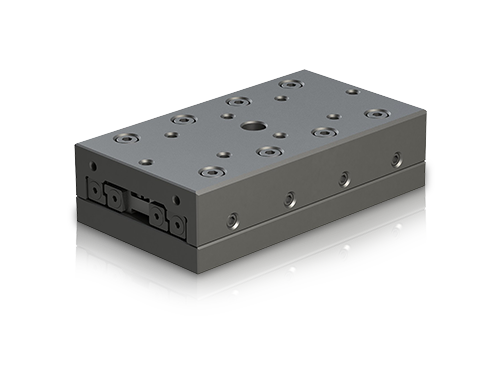 Crossed roller slides, also known as frictionless tables, consist of equal-length table top and bottom. The slide unit includes cross roller guides. The guides are playfree preloaded by lateral set screws. This allows precise adjustment of these linear slides.