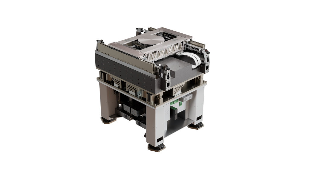 Die Herausforderung für dynamisch bewegliche Systeme besteht darin, die Bühnenmitte an dem Ort zu halten, an dem sie trotz der hohen Wärmemenge, die in die beweglichen Teile eingebracht wird, zu erwarten ist. Die thermische Stabilität des Systems wird durch eine Reihe innovativer Lösungen gewährleistet. Wir verwenden spezielle legierte Materialien, um die Bewegung des Waferzentrum zu reduzieren, Kühlkörper, um den Motoren Wärme zu entziehen, und isolierende Materialien, um zu verhindern, dass Wärme auf kritische Komponenten übertragen wird.