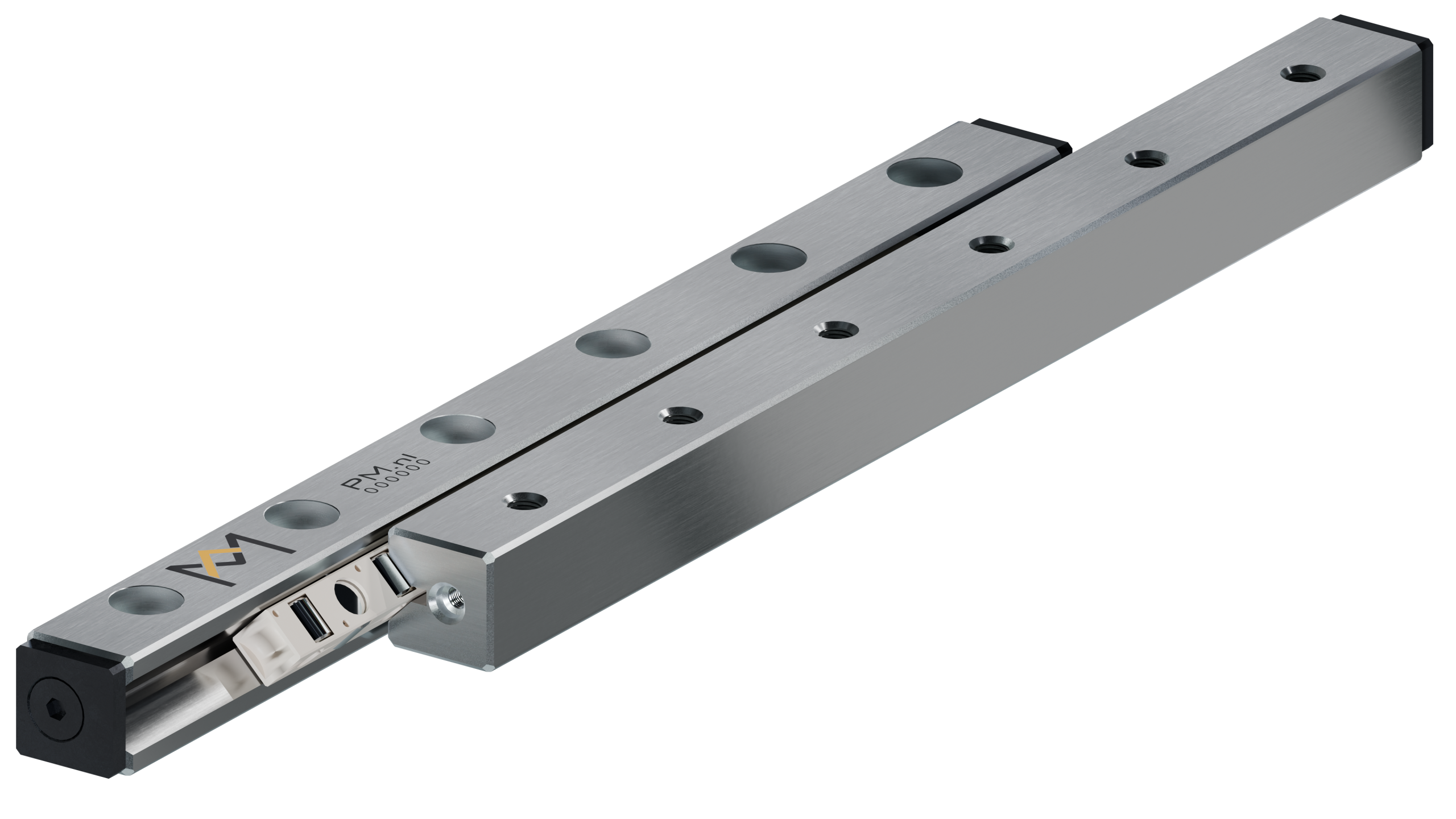 Through-hardened 90-degree V-groove rails made of bearing steel, precision ground. Very compact set of rails with high load capacity for use in small spaces.