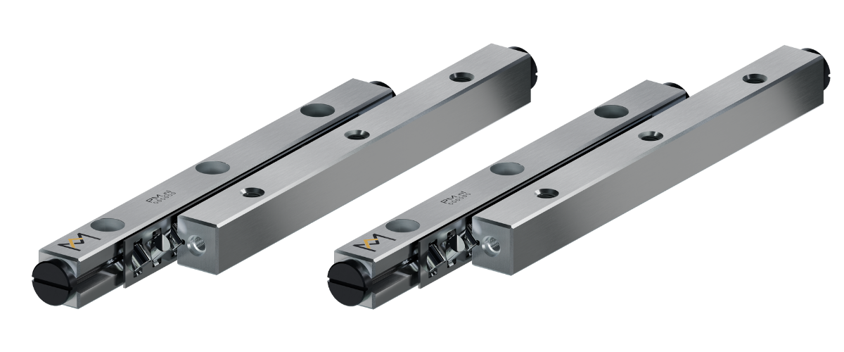 Through-hardened 90-degree V-groove rails made of bearing steel, precision ground.
