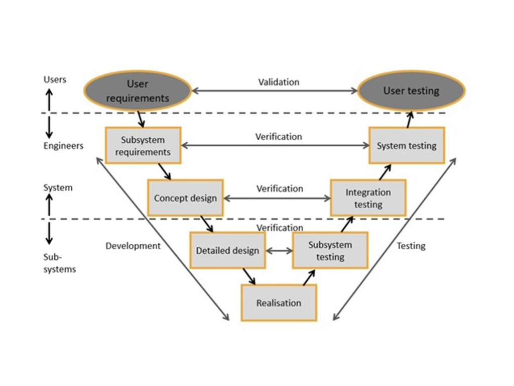 From conceptual idea to final product, PM uses a V-model for engineering design. Of course, user requirements are the starting point of any design process.